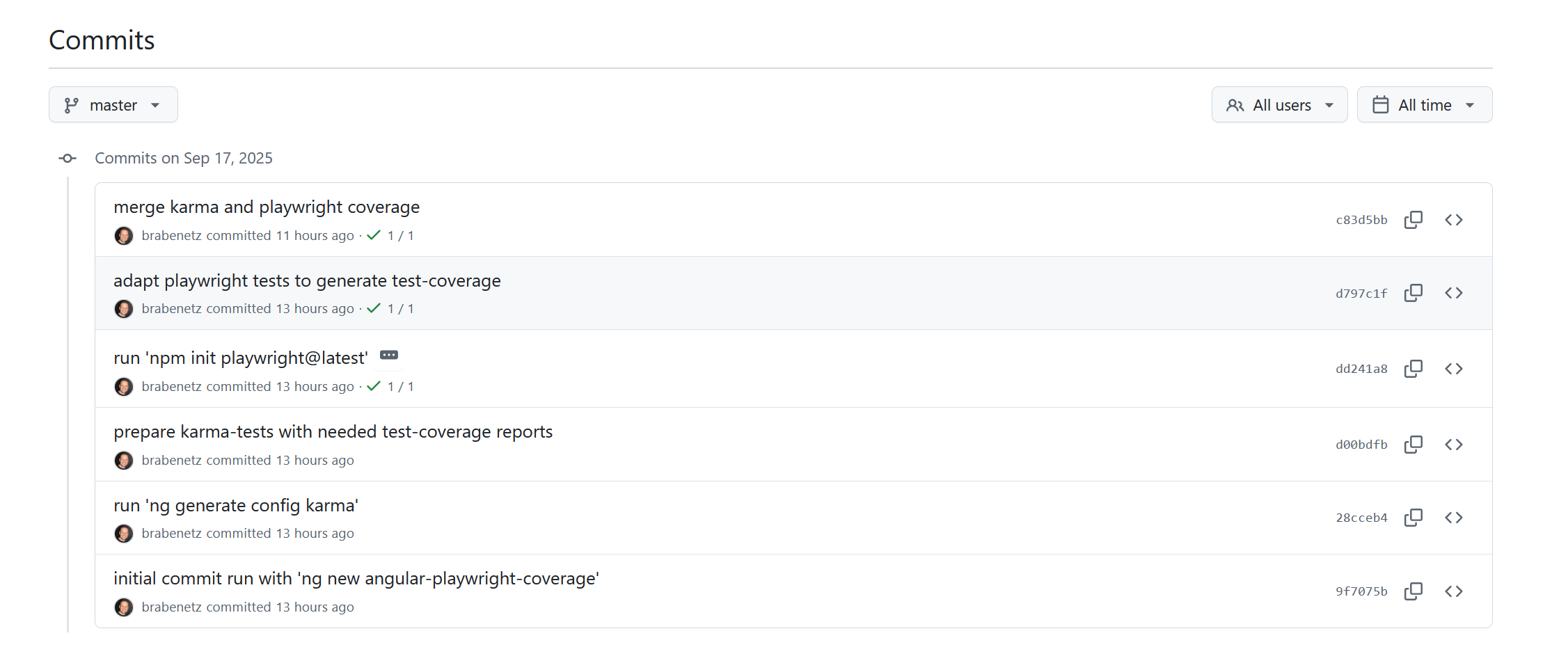 My demo project is on GitHub: https://github.com/brabenetz/angular-playwright-coverage For the Git history, I tried to represent my steps as clearly as possible: