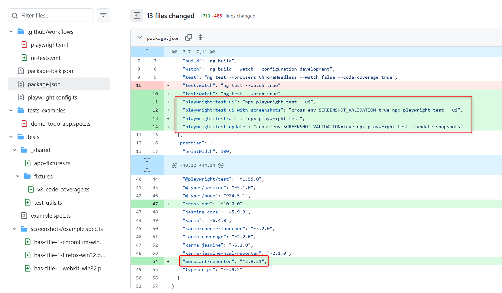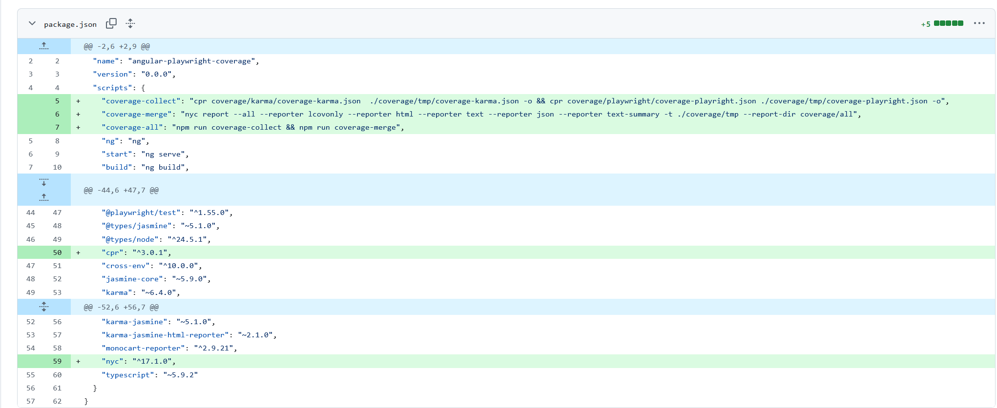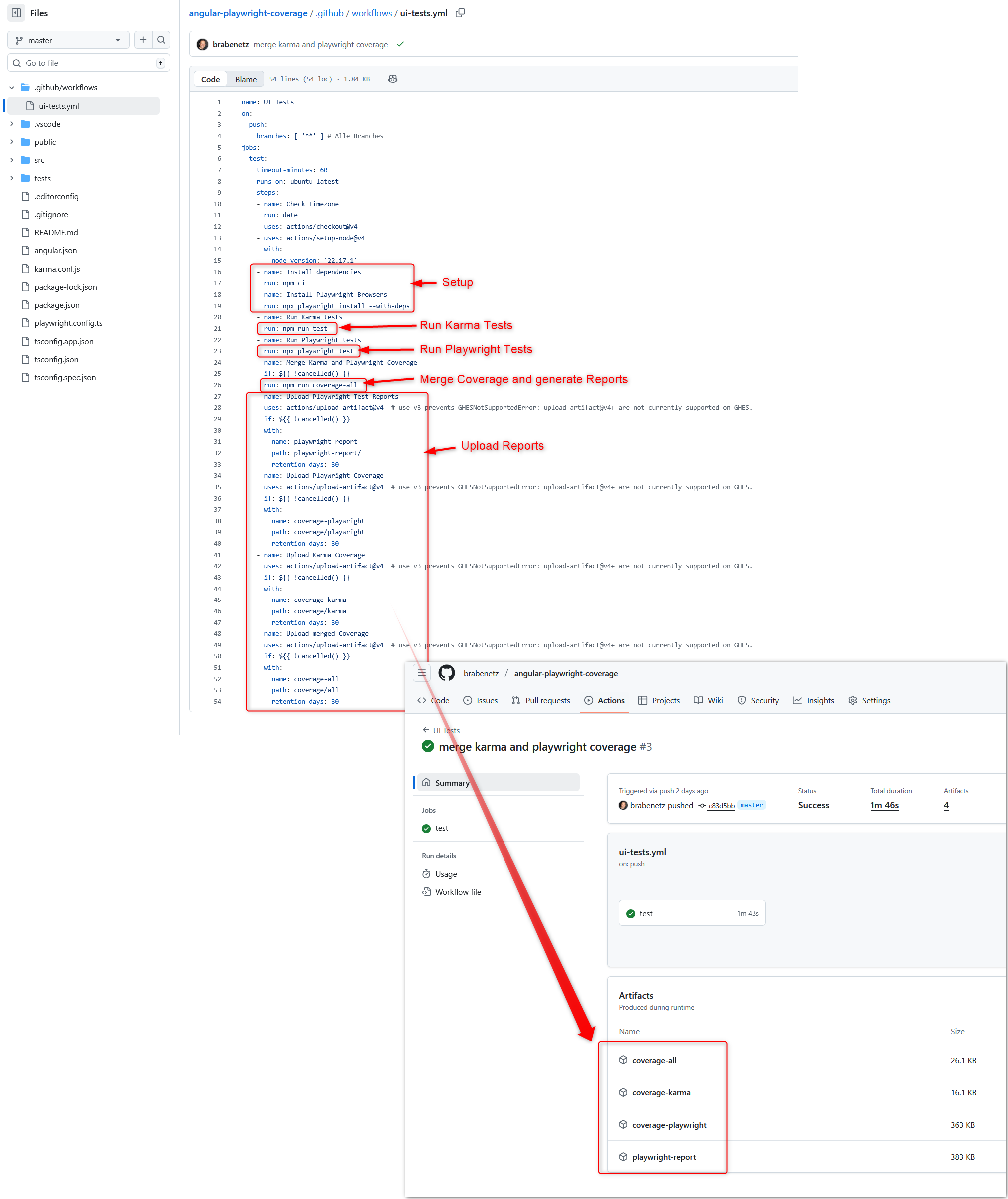 Important are the JSON files ‘coverage-karma.json’ & ‘coverage-playwright.json’: These need to be merged together in the next step.