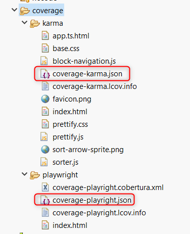 Important are the JSON files ‘coverage-karma.json’ & ‘coverage-playwright.json’: These need to be merged together in the next step.